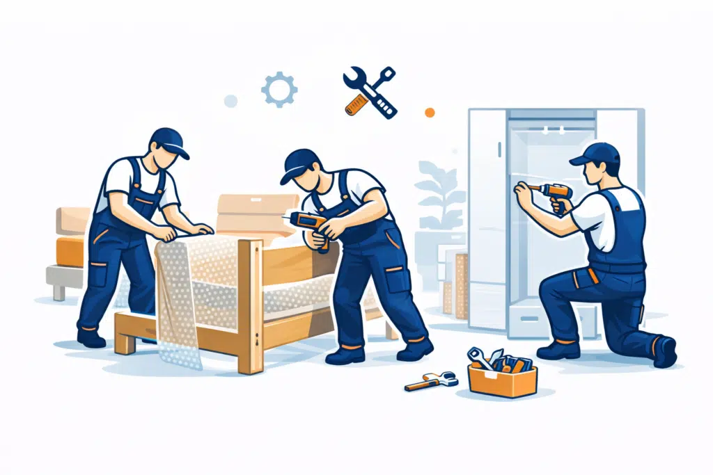 نوفر في شركة المنار فريقًا مختصًا في فك وتركيب غرف النوم والمطابخ والدواليب باحتراف كامل، مع الحفاظ على الأثاث بدون خدوش أو تلف أثناء التفكيك والتركيب.